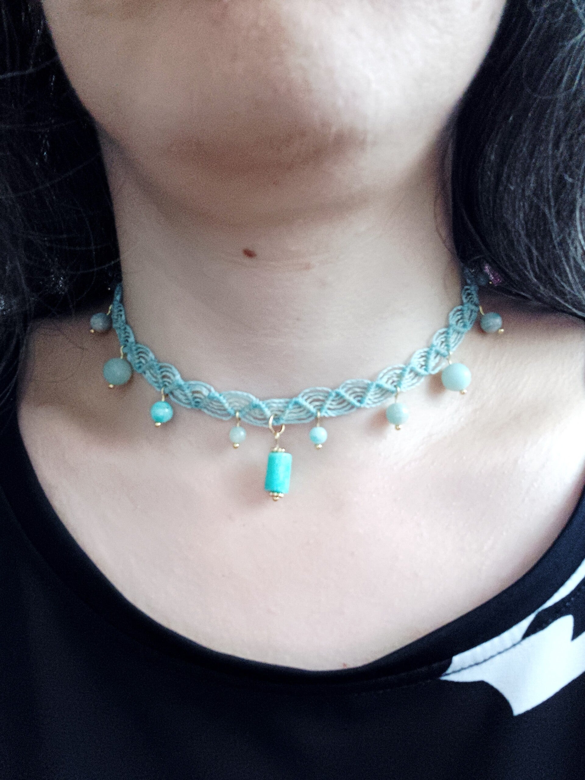 Matériaux : Fil linhasita, acier inoxydable, pierre gemme